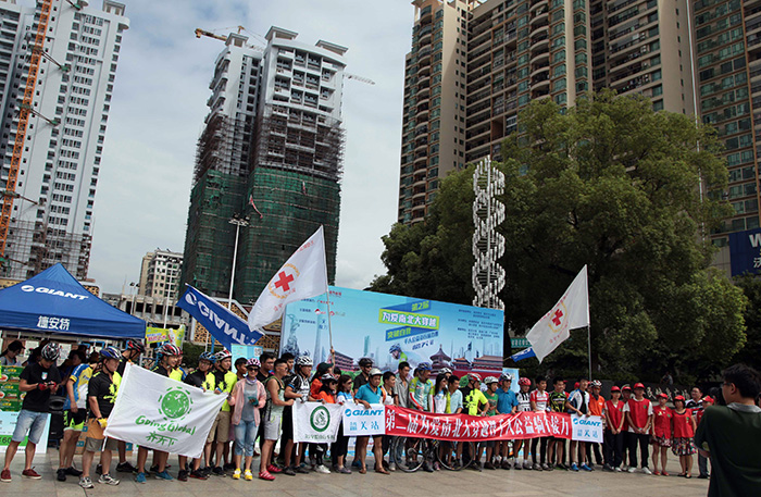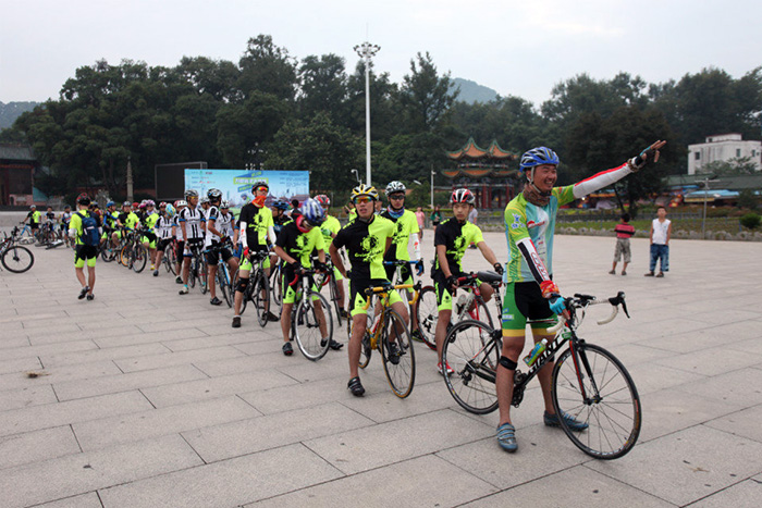 韶關(guān)南華寺門口,早上六點,王衛(wèi)領(lǐng)隊準備大穿越最后一天的騎行沖刺