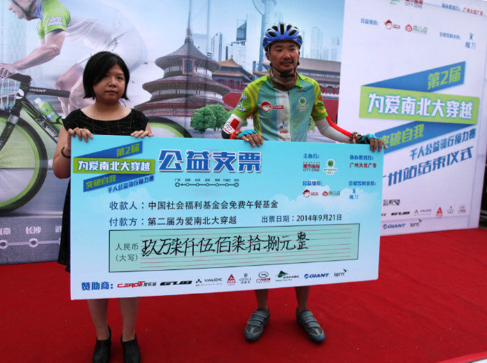 今年9月,他的團隊再次從北京出發(fā),用了16天的時間,橫穿華北平原,渡過黃河長江,過瀟湘,抵南粵。最終,完成了十站的愛心接力與公益?zhèn)餍街谩?br/>
