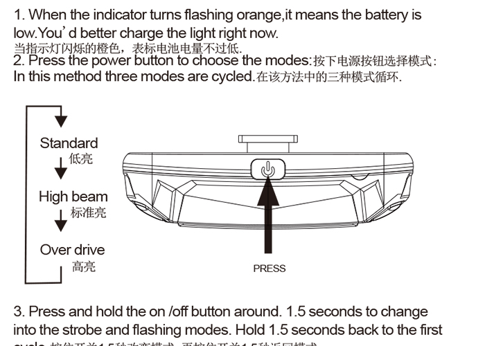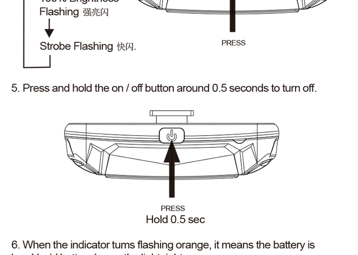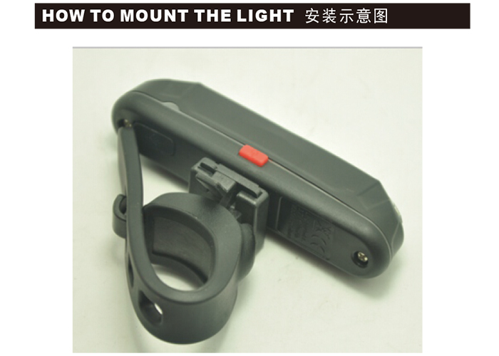 特性:LED技術(shù),COB整面發(fā)光30顆燈珠,高亮100流明設(shè)計(jì);配備USB接口,可循環(huán)充電;六種模式可循環(huán)切換;電池自動保護(hù)功能,電壓低于2.8V不工作;硅膠捆扎固定方式,120度方位調(diào)整,方便拆卸安裝;方型背扣設(shè)計(jì),可橫向和縱向不同角度安裝;可安裝在坐管,下叉,車把手,前叉等。