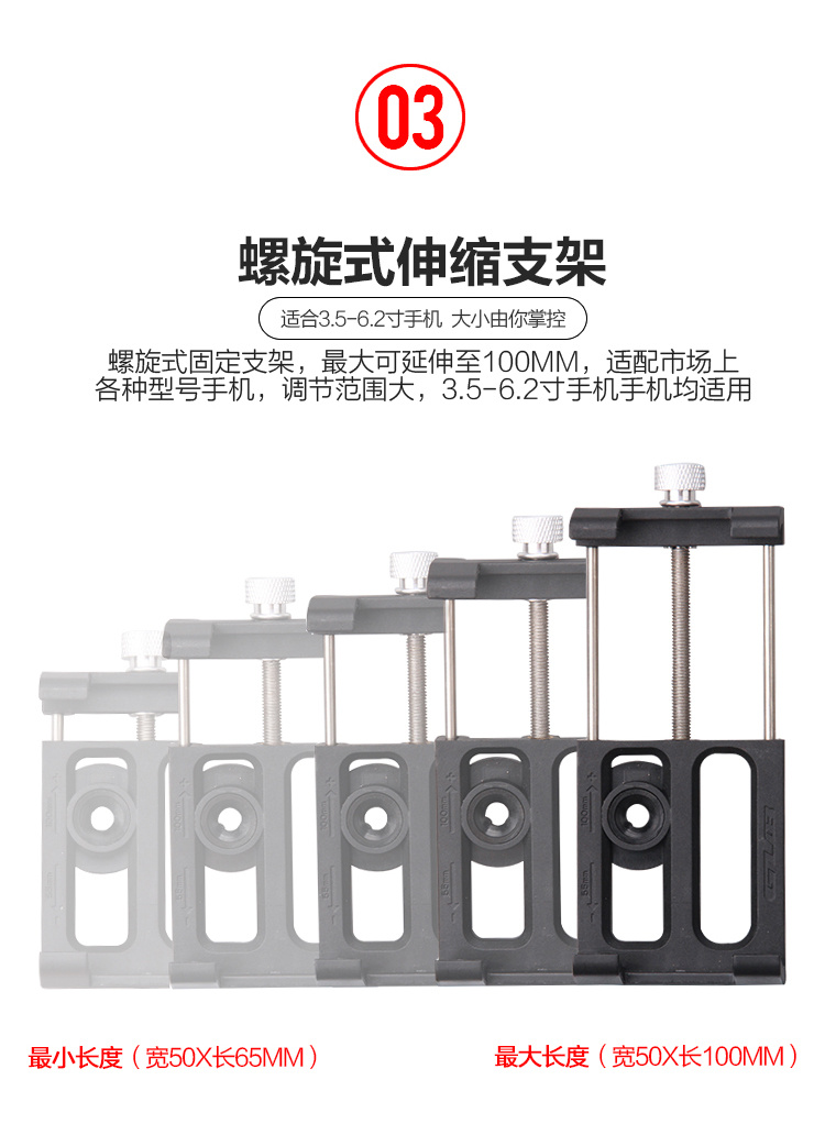 尺寸:長(zhǎng)70mm(夾持寬度55~100mm),寬50mm,夾子口徑Φ31.8mm