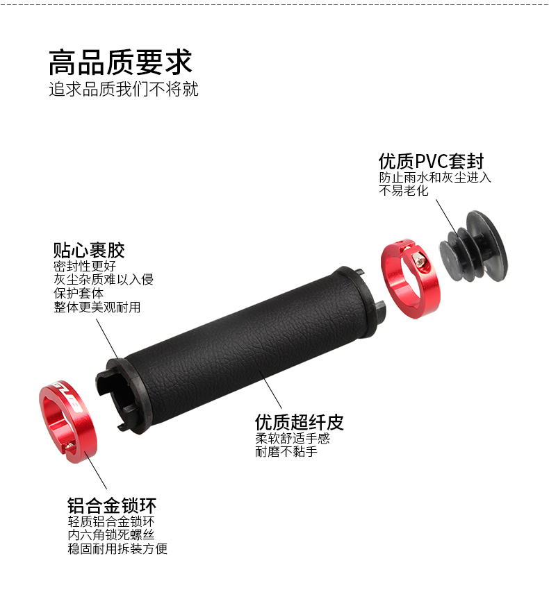 材質(zhì):超纖皮(套體)、鋁合金(鎖環(huán))、塑料(套堵)