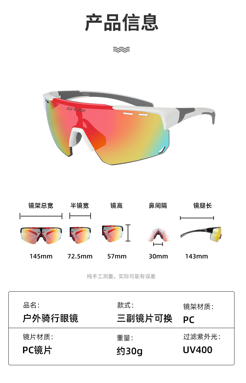 名稱:GUB 6500 騎行眼鏡