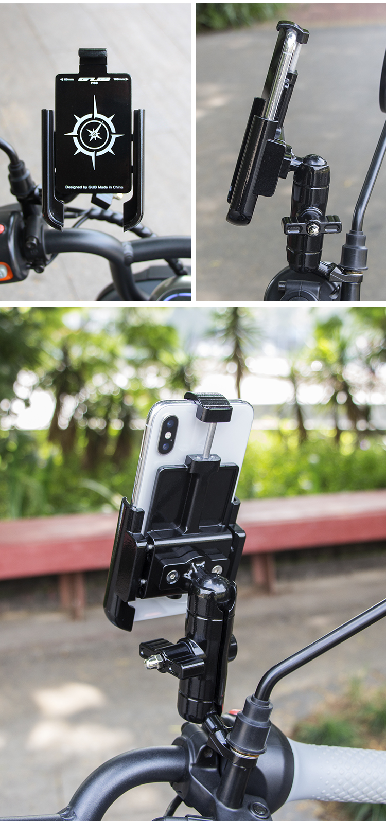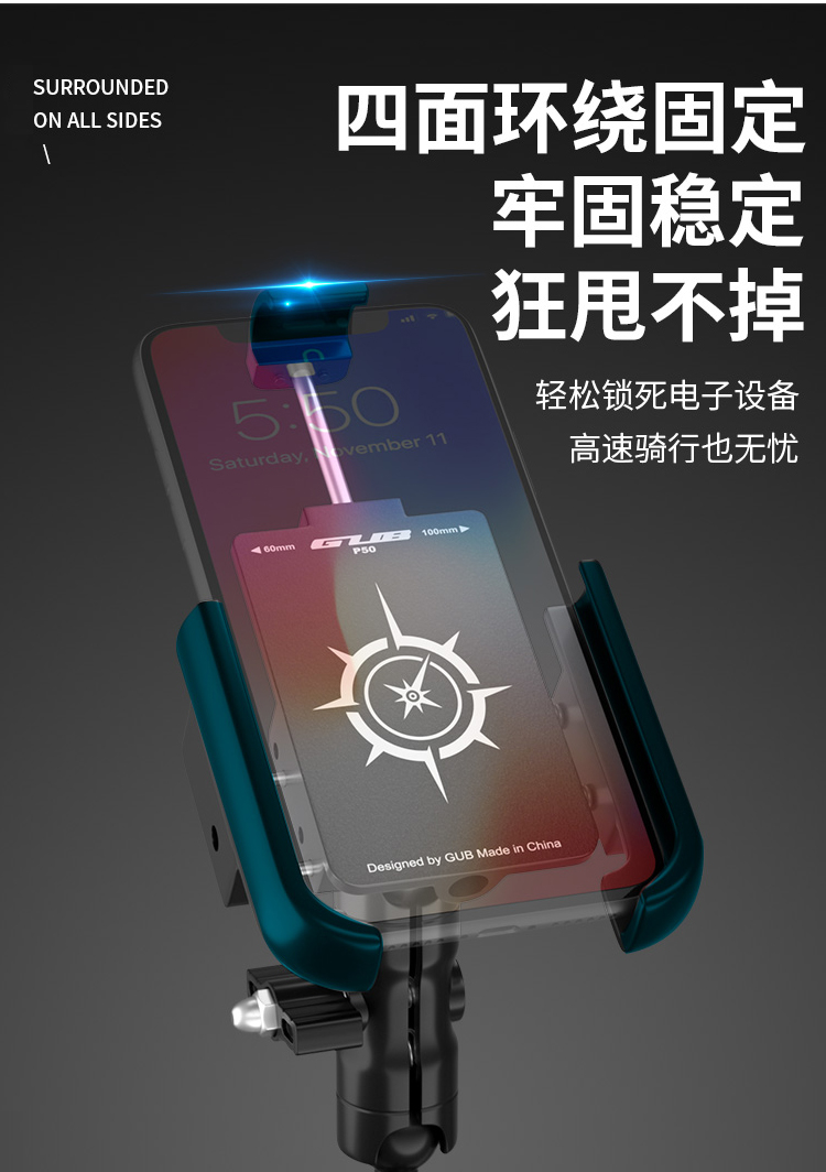 GUB P50 鋁合金手機(jī)支架(后視鏡款)