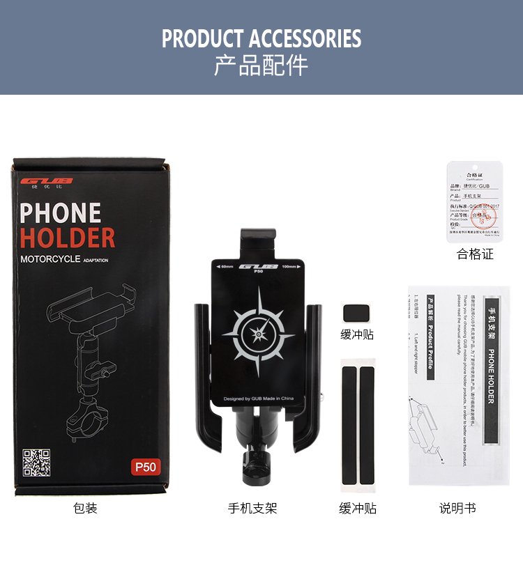 名稱:GUB P50 鋁合金手機(jī)支架(后視鏡款)