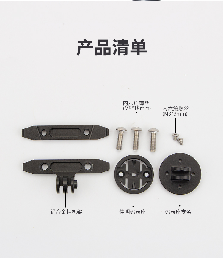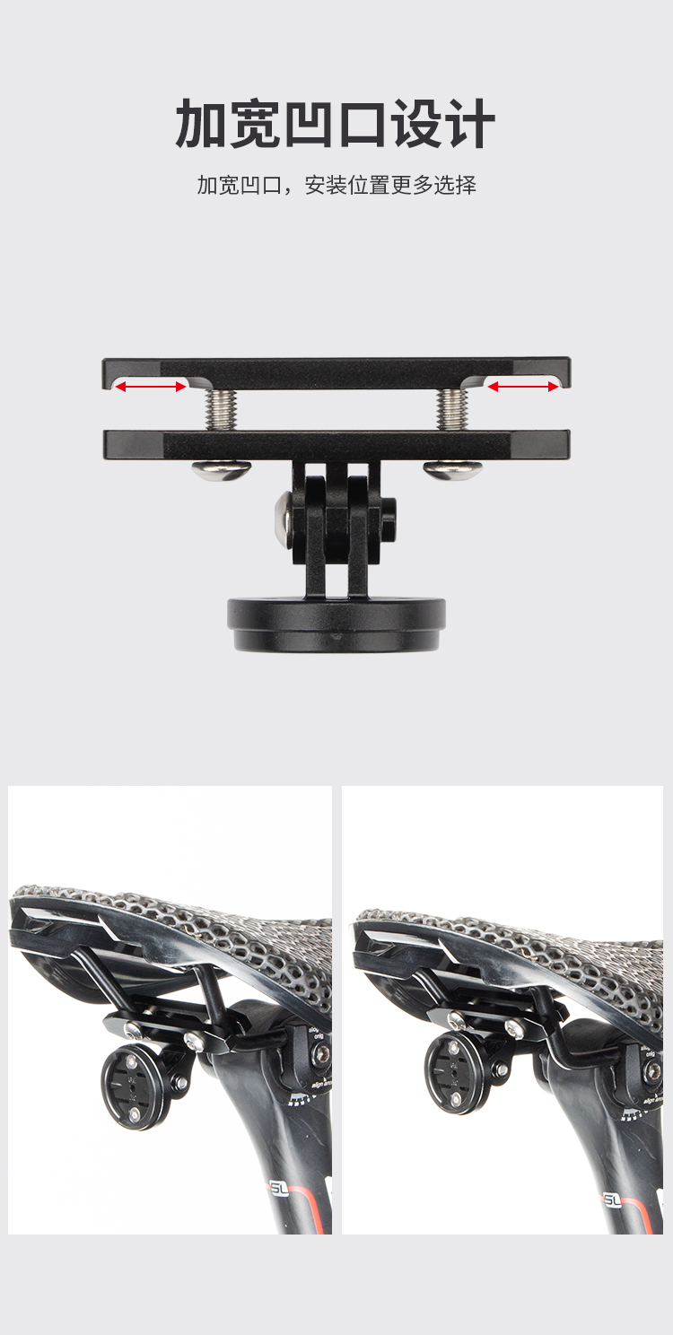 特點:鋁合金材質(zhì)堅固耐用,安裝在坐墊軌道后方,標配佳明接口支架,適用于佳明接口的尾燈安裝,也可以直接安裝GOPRO運動相機等配件