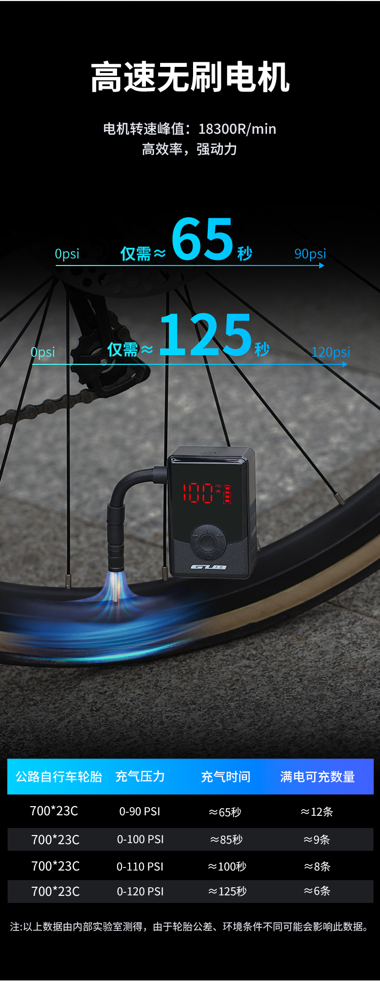 充氣壓力范圍:0~130psi