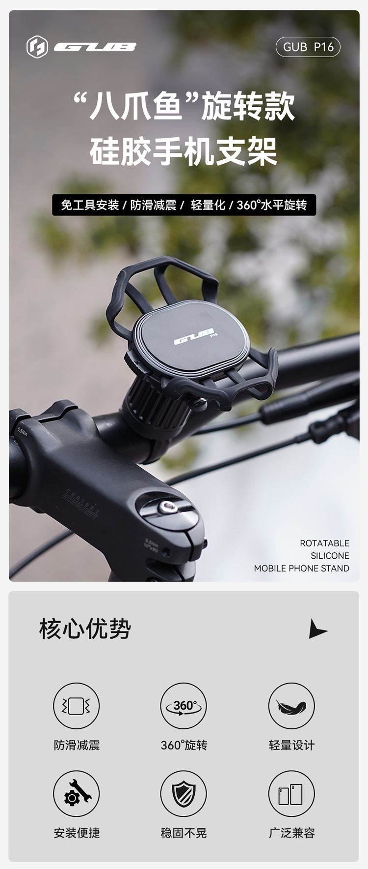 名稱:GUB P16 旋轉款硅膠手機支架